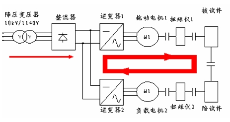 2、交流電力測功機處于發電狀態時將電能送回電網或者由電阻箱消耗,在電動狀態能帶動被試件運轉;